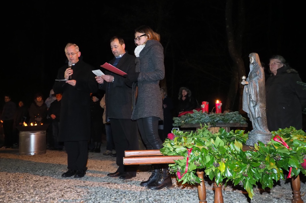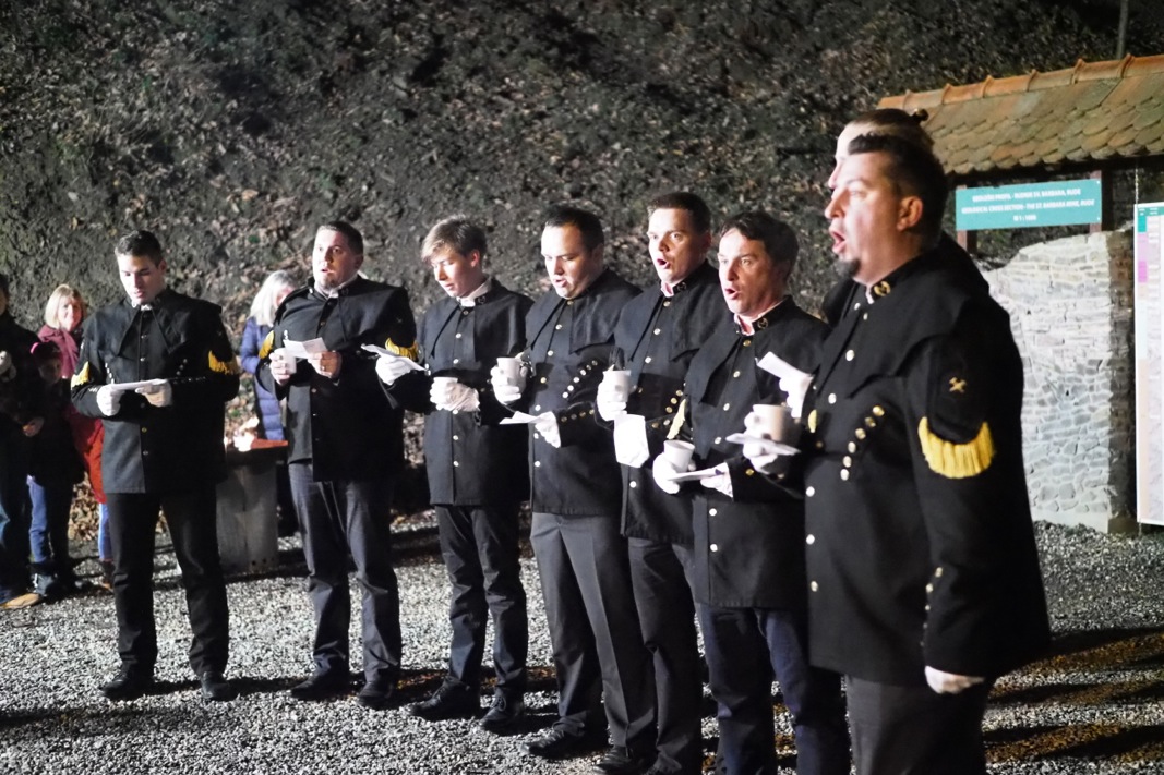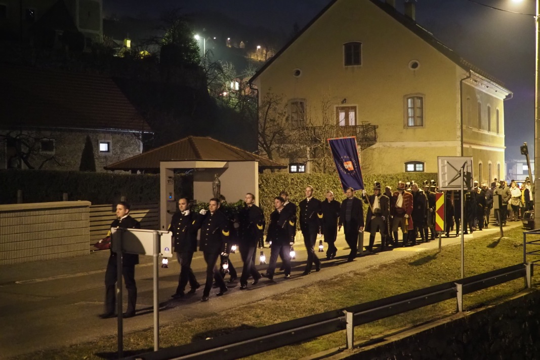 Predvodnici završne procesije i ceremonije ponovno su bili Bergmani – članovi sekciji KUD-a „Oštrc“ za očuvanje rudarske baštine. Na čelu procesije u kojoj je sudjelovalo oko 300 mještana i gostiju Bergmani su nosili željezni križ s njemačkim riječima molitve „Oče naš“ i brončani kip svoje zaštitnice. Kip se već tradicionalno 1. prosinca unosi u crkvu, a 4. prosinca vraća natrag u podzemlje rova Sveto trojstvo na svoje staro mjesto ̶ 50 metara ispod površine, u stare rovove željezne rude koja se vadila prije 160 godina.