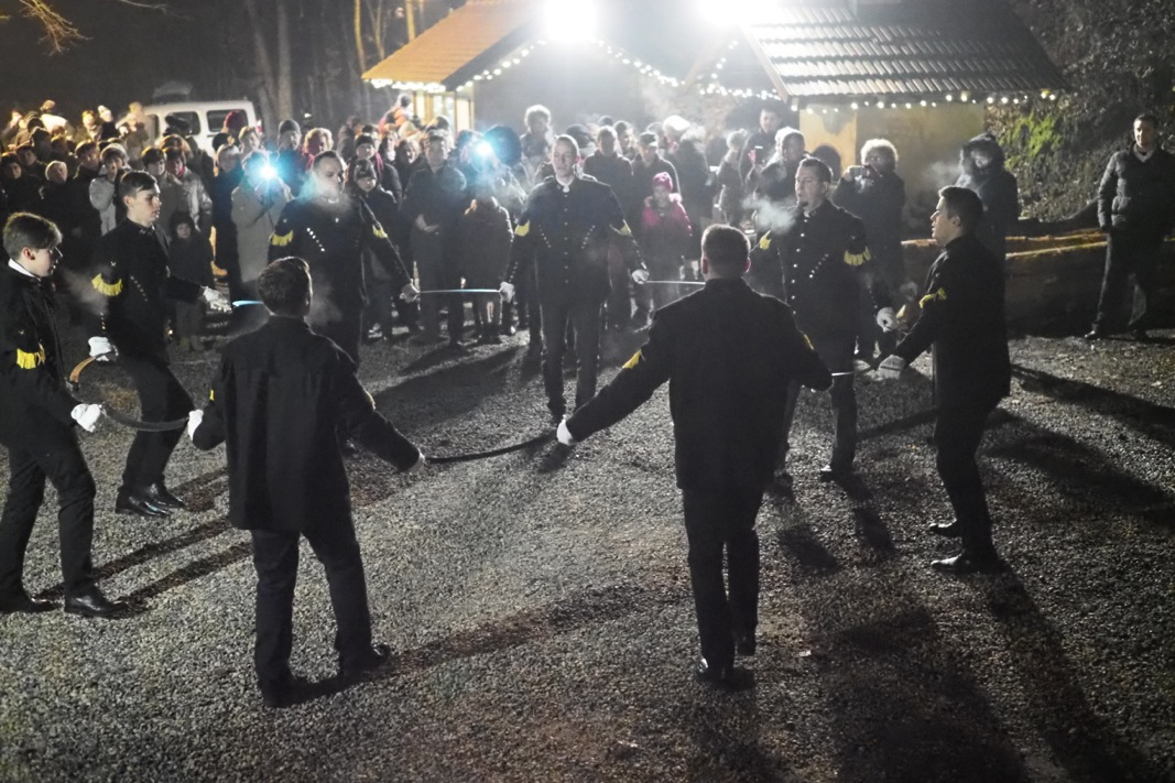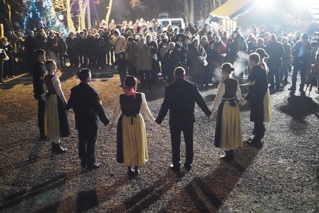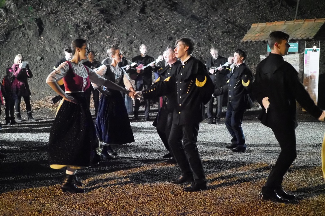 Kao svojevrsna uvertira, i ove se godine u bajkovitom prostoru ispred Rudnika, pred okićenim borom odvijao prigodni polusatni program. Prvi su se predstavili upravo Bergmani s rudarskim plesovima. Plesovi su specifični jer se izvode samo jednom godišnje uz korištenje rudarskog pomagala za skidanje kore – obručnjaka. Nakon plesa otpjevana je Kalabucija ̶ jedna od rijetkih lokalnih sačuvanih pjesama koja se u Rudama pjevala još davne 1860. godine. Bergmane su zatim na prostoru ispred Rudnika zamijenili folkloraši i tamburaši KUD-a „Oštrc“ izvedbom Alpskih plesova. I ovi plesovi imaju korijene u njemačkoj kulturi i posvećeni su brojnim rudarima njemačkog porijekla koji su se pred više stotina godina doselili u Rude u potrazi za poslom.