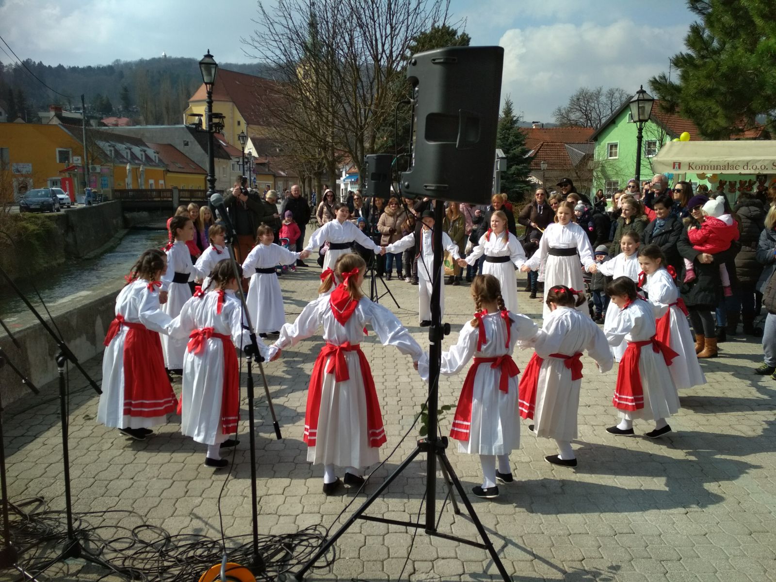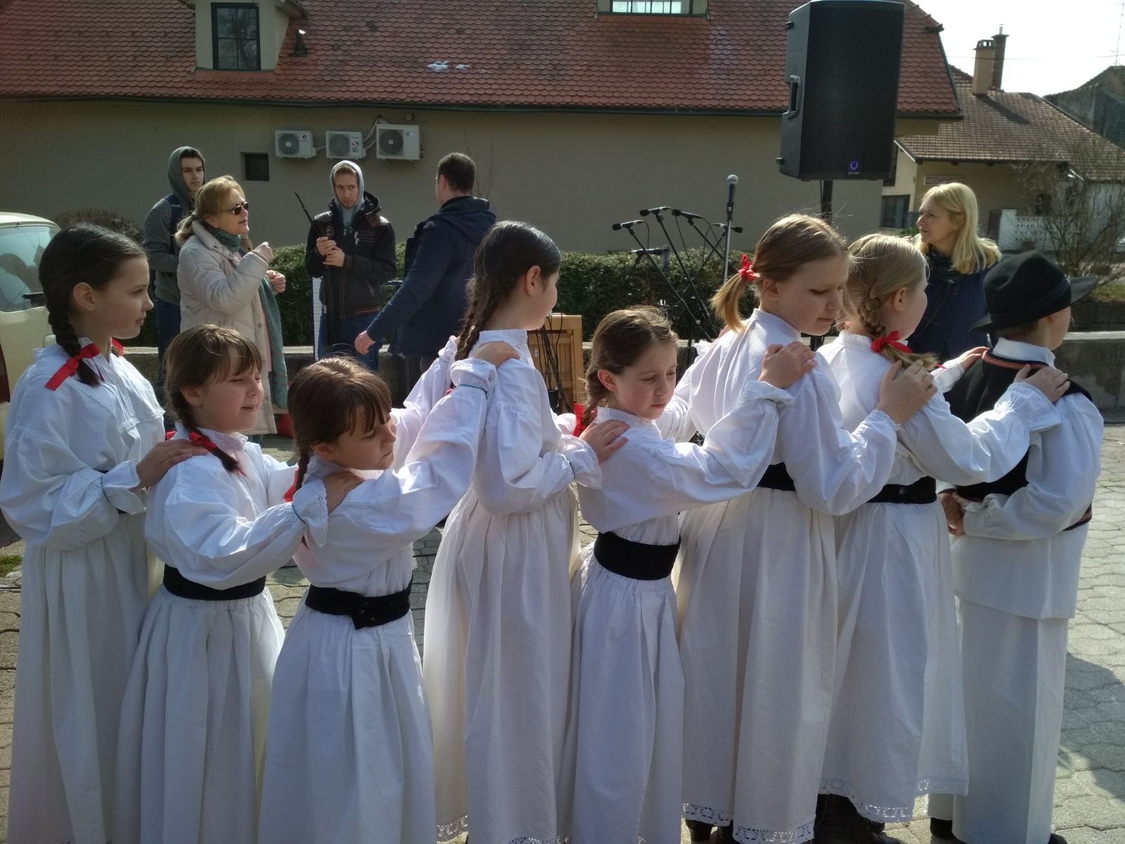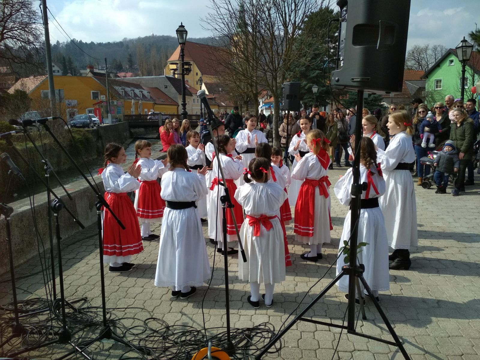 U subotu 24. ožujka već u rano jutro okupili su se najmlađi folkloraši zajedno s roditeljima u školi kako bi na vrijeme napravili frizure te obukli nošnje i napravili generalnu probu. Nakon probe uz par „pravila“ podsjetili smo se kako trebamo plesati i pjevati te da je najbitnije dobro se zabaviti. Put Samobora krenuli smo automobilima te jedva pronašli parkirna mjesta u samoborskoj gužvi. Vidno uzbuđeni folkloraši su čekali svoj trenutak. Posljednje riječi ohrabrenja i nastup je mogao početi. Izvodili su dječje igre s pjevanjem različitih krajeva Hrvatske: „Oj, ptičice lastavčice“, „Brala sam žito“ te ovjekovječili nastup igrom „U Zagrebu je kućica“ te imali mali prikaz vjenčanja što je njima bilo izrazito smiješno i zabavno. Neki od plesača započeli su svoju karijeru prije nepuna dva mjeseca te je za njih ovaj nastup bio veoma poseban. Ja, kao voditeljica, bila sam ponosna i sretna na malene folkloraše koji su uz puno smijeha plesali kao da ih nitko ne gleda, a publika je bila mnogobrojna. Još je jedan nastup iza nas a sljedeći nas očekuje već 21. travnja na predsmotri u Novakima Samoborskim, nastavljamo dalje istim tempom odmah nakon praznika.